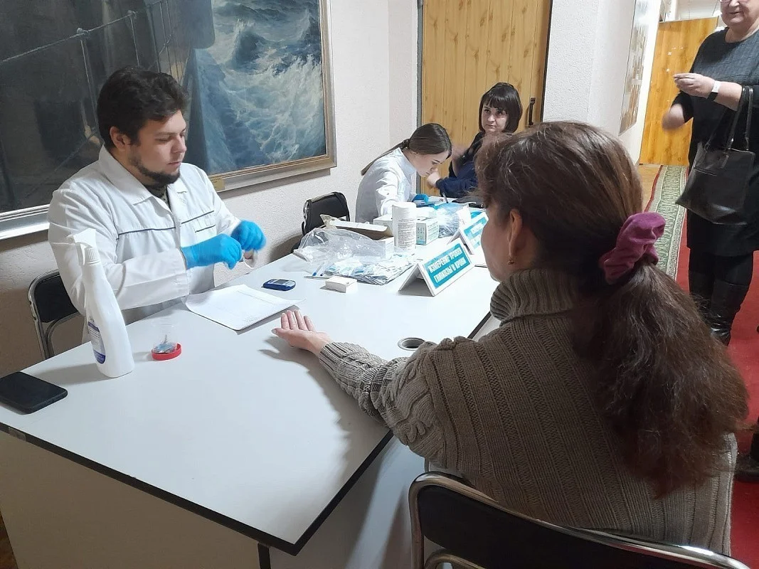 Всем желающим проведены замеры артериального и внутриглазного давления, уровня сахара и содержания кислорода в крови.