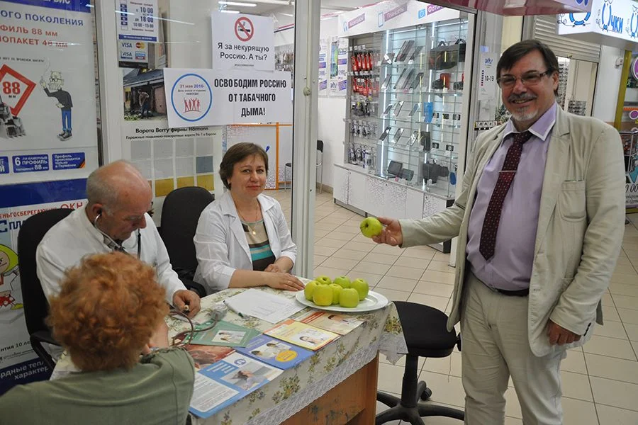 Также в рамках Дня здоровья специалисты Центра медпрофилактики традиционно пригласили всех желающих бесплатно пройти диагностику на экспресс-оборудовании в передвижном центре здоровья, обследование на мобильном флюорографе Советского противотуберкулезного диспансера, получить консультацию врача-кардиолога. Большую работу по обследованию и консультированию жителей по результатам выявления факторов риска развития сердечно-сосудистых заболеваний и сахарного диабета организовали специалисты Гусевской центральной районной больницы.